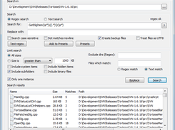 Results are going to be displayed as a list, with information such as name, size, matches, path, encoding and date modified.